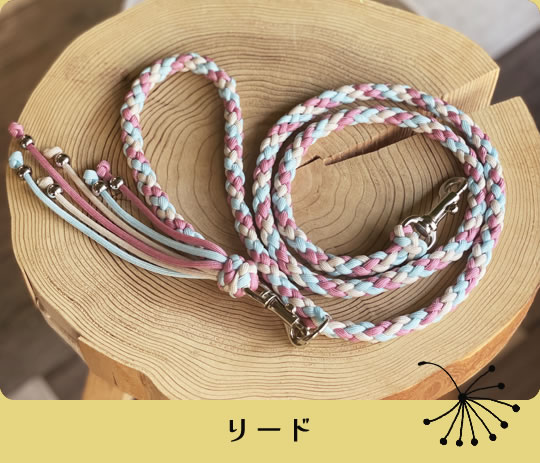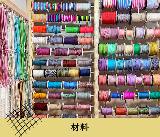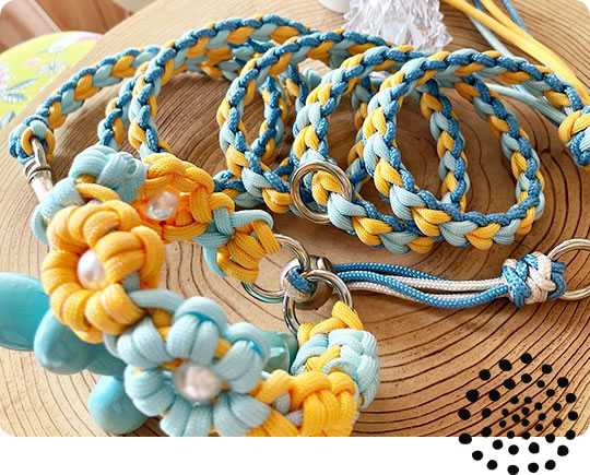 丈夫な紐(コード)なので、ストラップやペットの首輪などにも愛用され、いろいろなコードを選んで組み合わせることで自分だけのオリジナルグッズにすることもできます。
